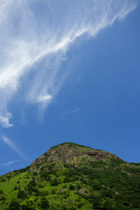 攀過一段岩道,回望走過的脊線,只見一彎狹長的山稜翹起,有如海面陡升的山咀。其後再急攀一段,已接上了中狗牙的山徑。一線生機側的巖石上方,如絲如絨的卷雲往四方八面延散開來。天色之美好,教人驚喜。豈知攀上閰王壁後,那回首一望的景致才真的令我大為驚嘆。
