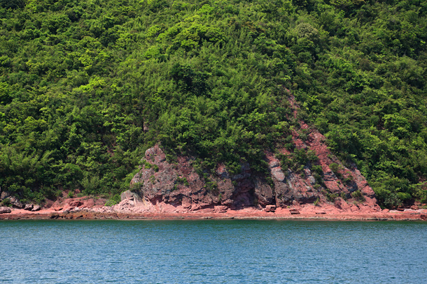 當船隻駛過大赤門,續漸地靠近岸邊的鬼手岩,勾起了挑戰黃竹角咀再下探鬼手的衝動;隨後穿越狹窄的紅石門水道,又發現好久未有踏足這片岩岸,可惜由船上遠望,始終感受不到其紅彤彤的熱情;最後進入媲美蘇杭的印洲塘,轉乘小艇往鸕鶿排,開始今天的第一個行程。
