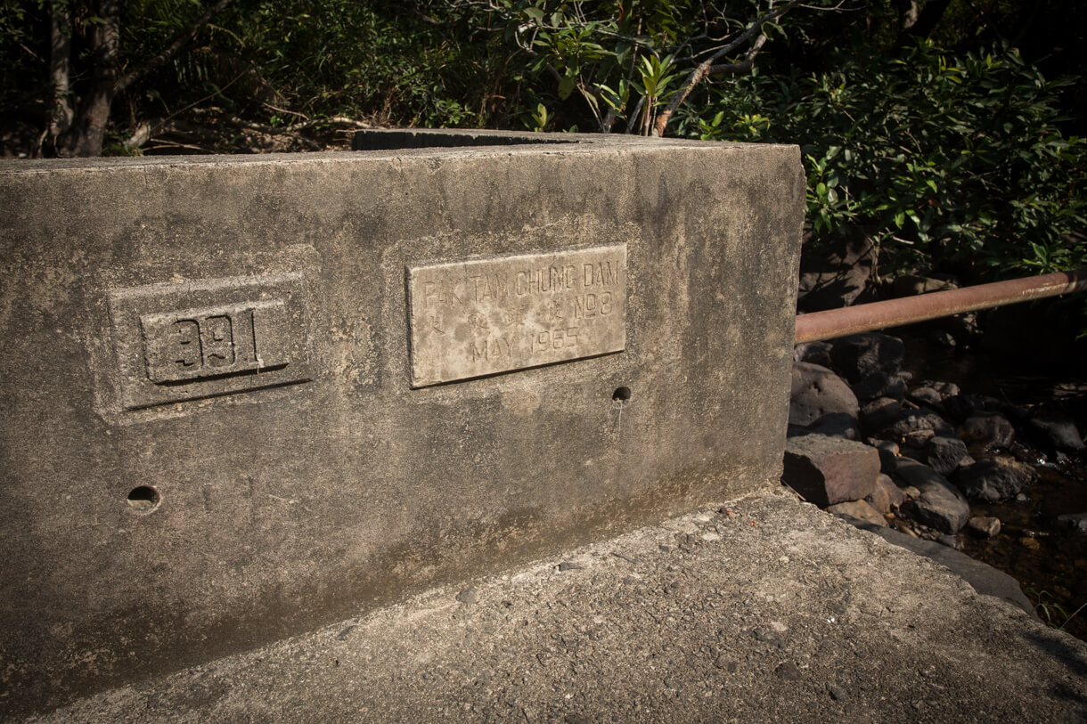 石澗築有兩道堤壩。第一道堤壩上刻著「Pak Tam Chung Dam 大陂頭陂 No. 8 May 1965」等字。「陂」一字有池塘或蓄水池之意,而「陂頭」則指人工堤壩,但合併為「大陂頭陂」,卻叫人難以理解。