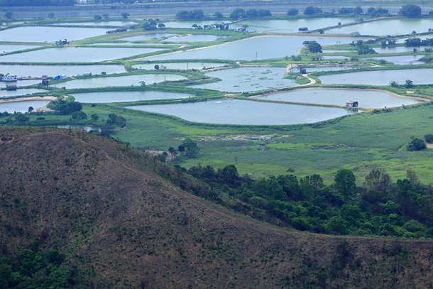 除起點外,攀上大石磨的路線清晰明確。登臨大石磨,放眼盡是大陸經濟起飛的景象,眼下則是一片綠悠悠的、以魚塘為主的緩衝區。最後漫遊雙魚河,也可享受具空間感的郊區氛圍。